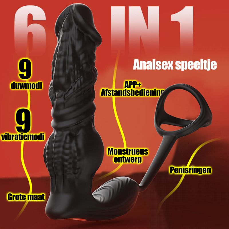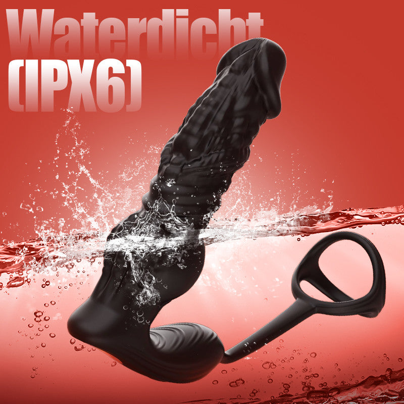 Zacht en realistisch anaal speeltje voor prostaat met 9 vibratiestanden en dubbele ring voor ultiem genot