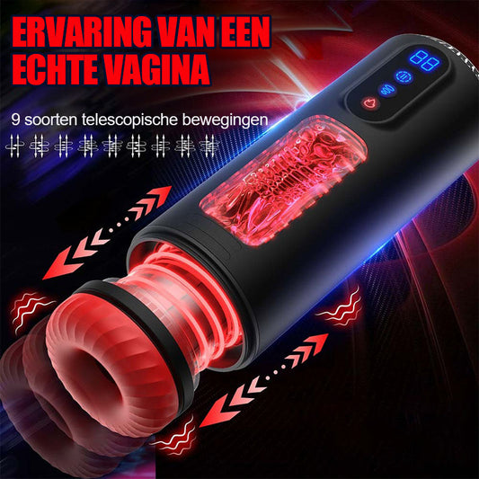 9-Frequentie telescopische, vibrerende, zuigende en verwarmde masturbator voor mannen
