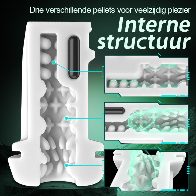 De driefasen binnenvoeringstructuur met rijke textuurlagen geeft je een superrealistisch vaginaal penetratiegevoel.