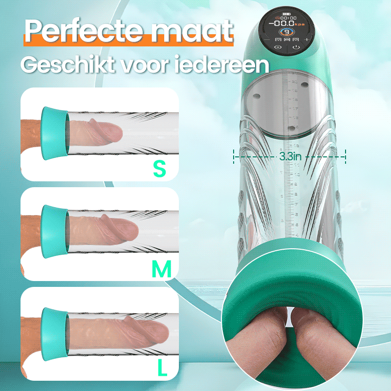 Kenmerken: Zuigen, Penisvergroting, LCD-scherm, 3 siliconen hoezen